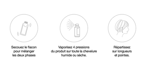 - Vaporisez 4 pressions de produit sur toute la chevelure, humide ou sèche.